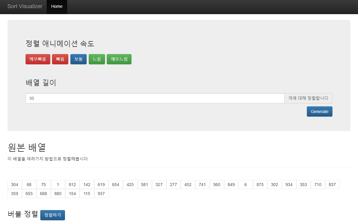 정렬 애니메이션 속도 매우빠름 빠름 보통 느림 매우느림 Generate