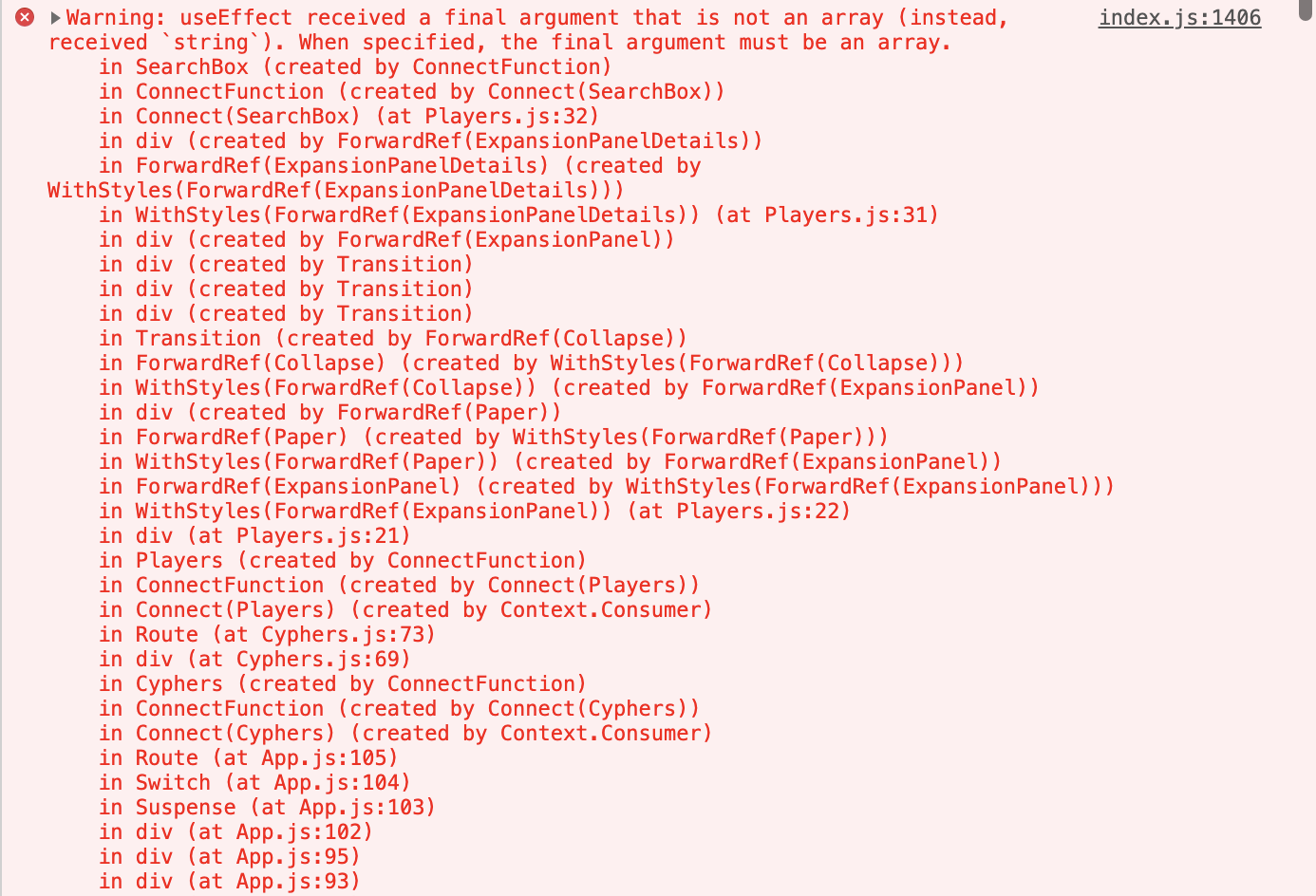 즉 useEffect의 마지막 인자(deps)부분이 array가 아니라서 발생하는 에러다.