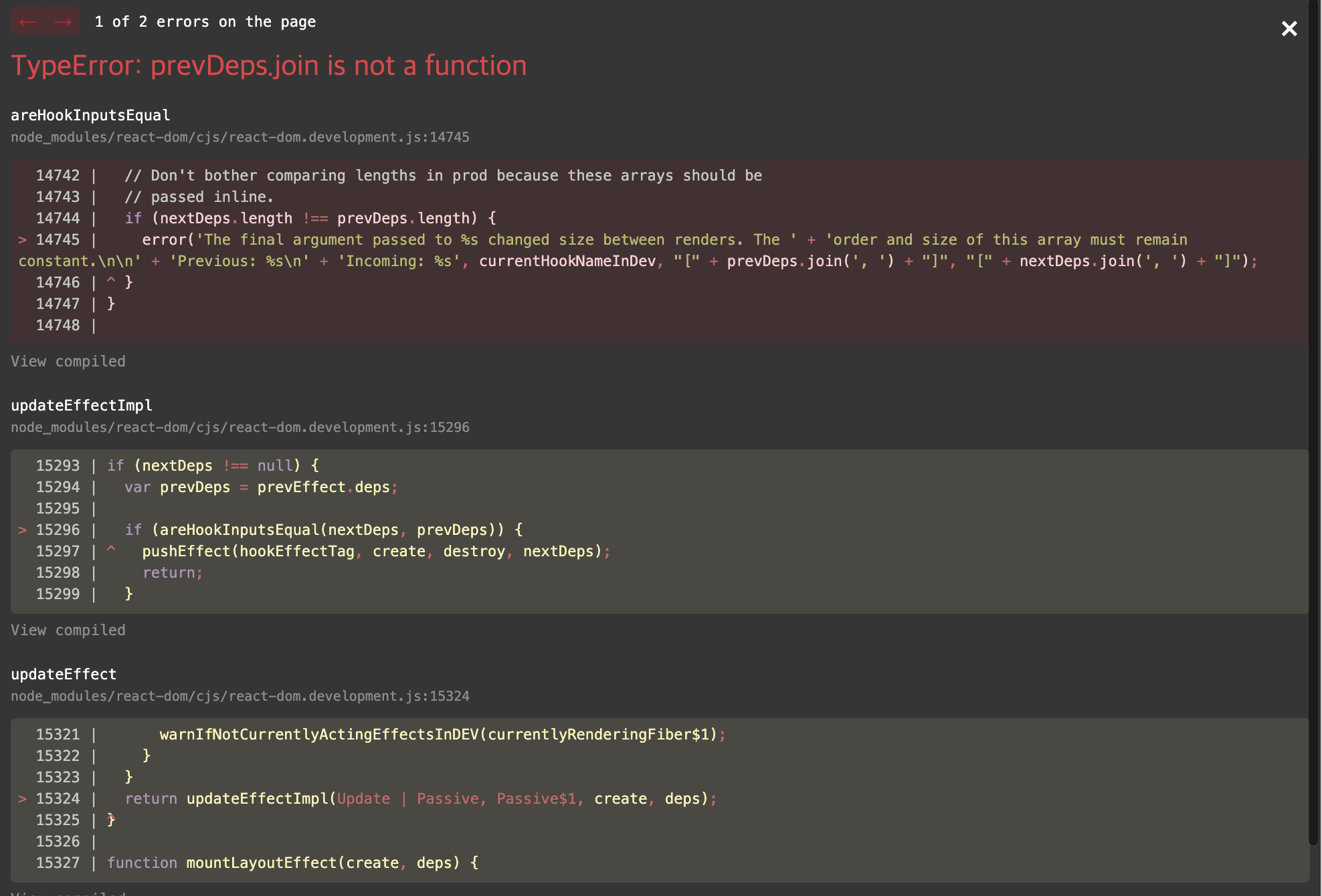 [React] TypeError: prevDeps.join is not a function