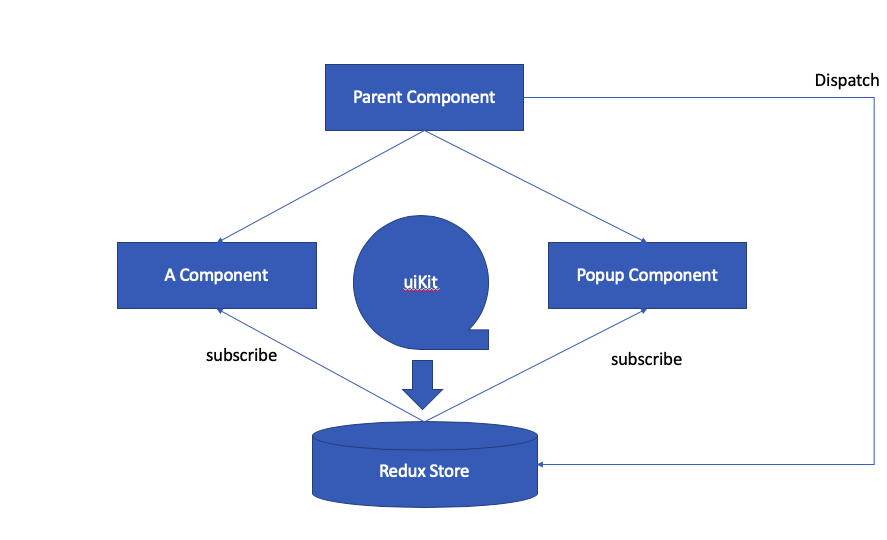 나의 경우에는 redux store에 자주 사용하는 ui component를 제어하는 객체(이하 uiKit)를 최상위 컴포넌트에서 하나 디스패치하고