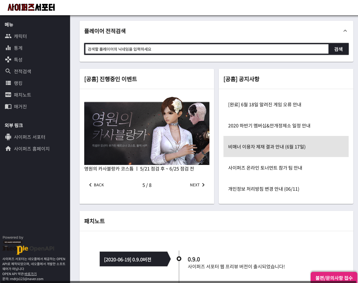 [사이퍼즈 서포터] 웹 프리뷰 버전 출시 본문