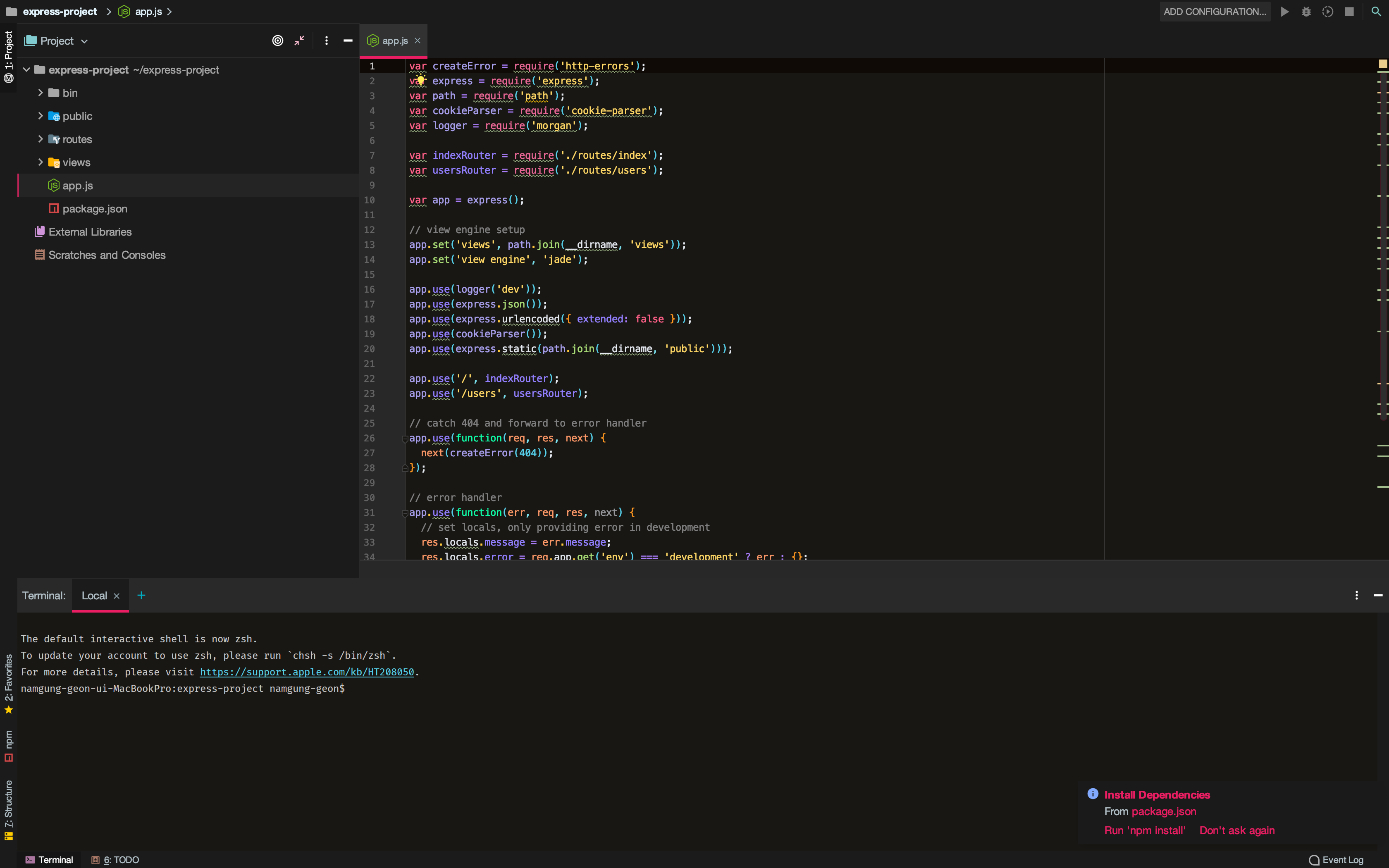 만약 npx express-generator 실행 중 오류가 발생한다면, Nodejs 버전을 업데이트하거나