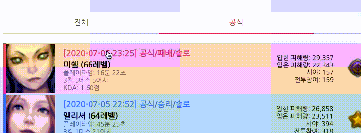 따라서 탭을 고르게 되면, 최대 400개의 게임 로그 컴포넌트가 리렌더링 되어 엄청난 렉을 유발한다.