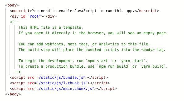 빌드된 결과물을 보면 <body></body>는 텅 비어있고