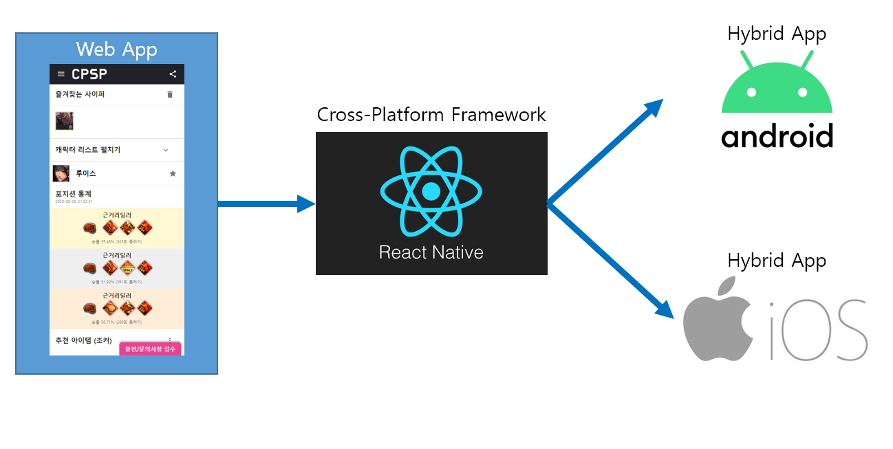 이를 해결하기 위해 Hybrid Application으로 서비싱하는것을 채택했습니다.