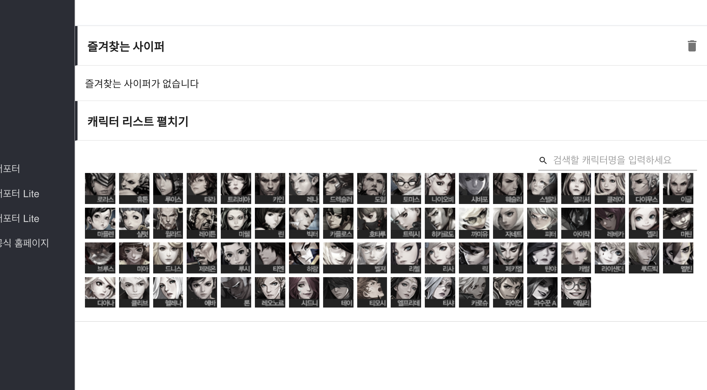 차례로 캐릭터 정보 페이지/플레이어 전적에서 캐릭터 필터링/캐릭터 아이템 통계 페이지인데,