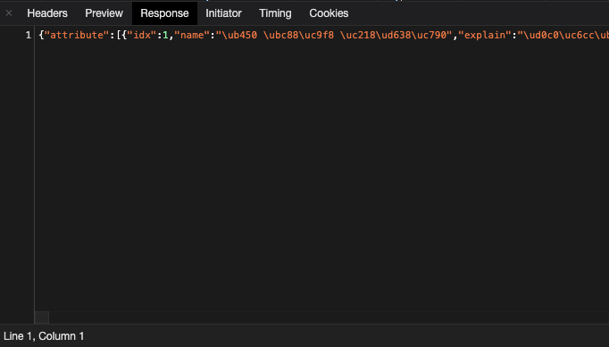 이런식으로 포맷팅되지 않은 JSON 파일은 사람이 읽기 힘들다.