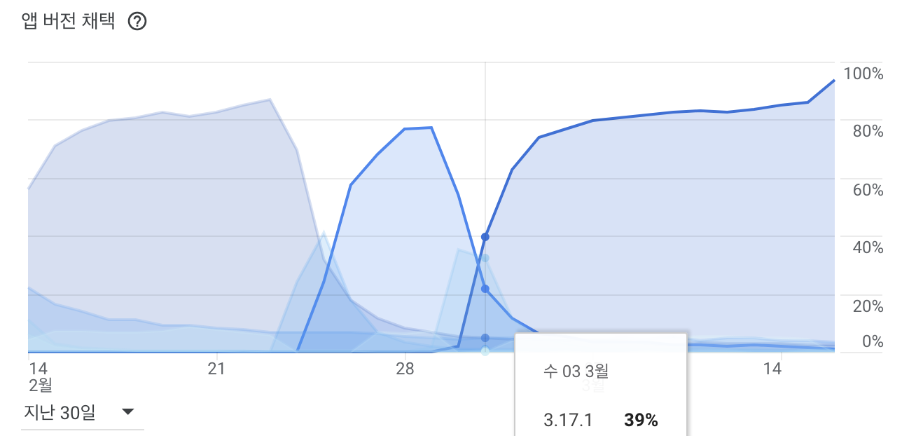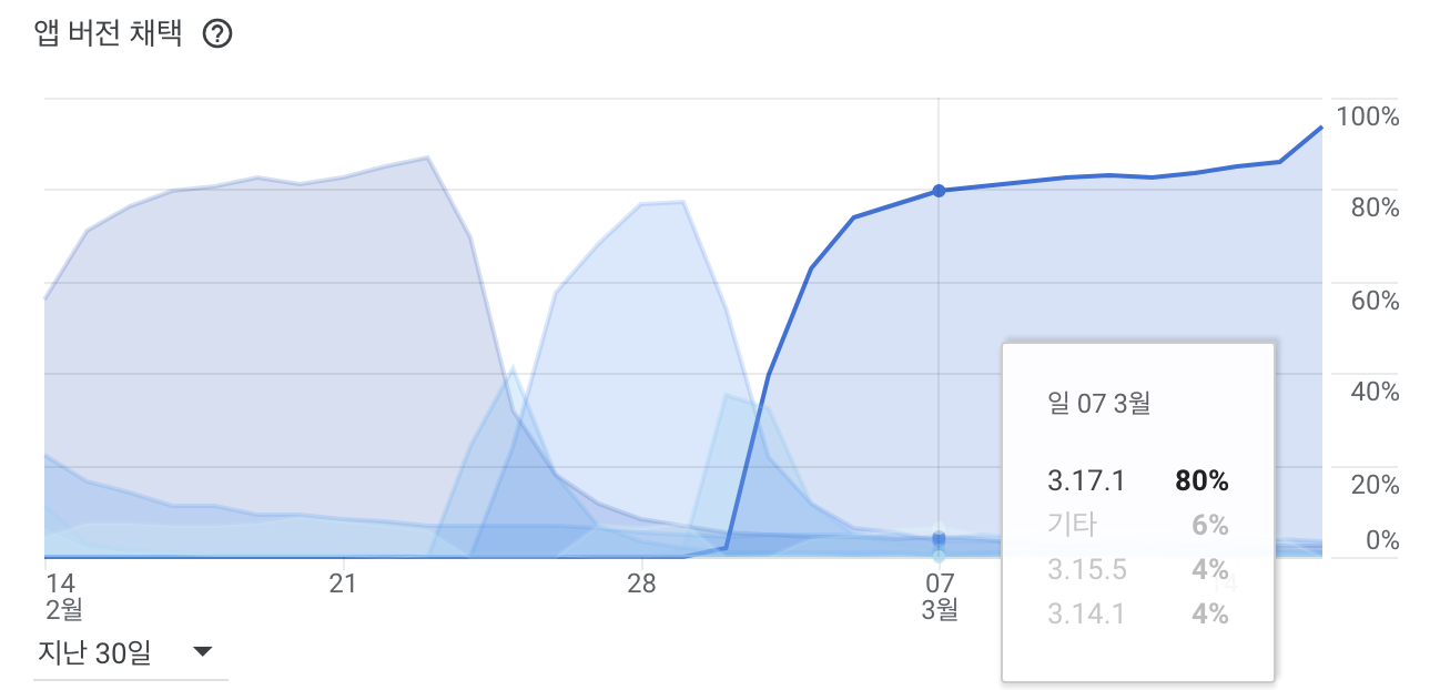 3.17.1 버전을 릴리즈한 당일인 3월 2일에는 업데이트율 5% 미만