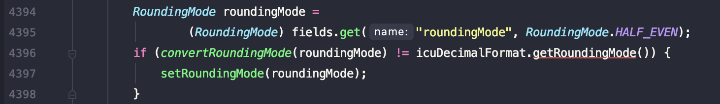 fields.get()부분에서 Null을 반환한 후, setRoundingMode에서 전달된 값이 null일 경우 NPE를 발생시킨다.