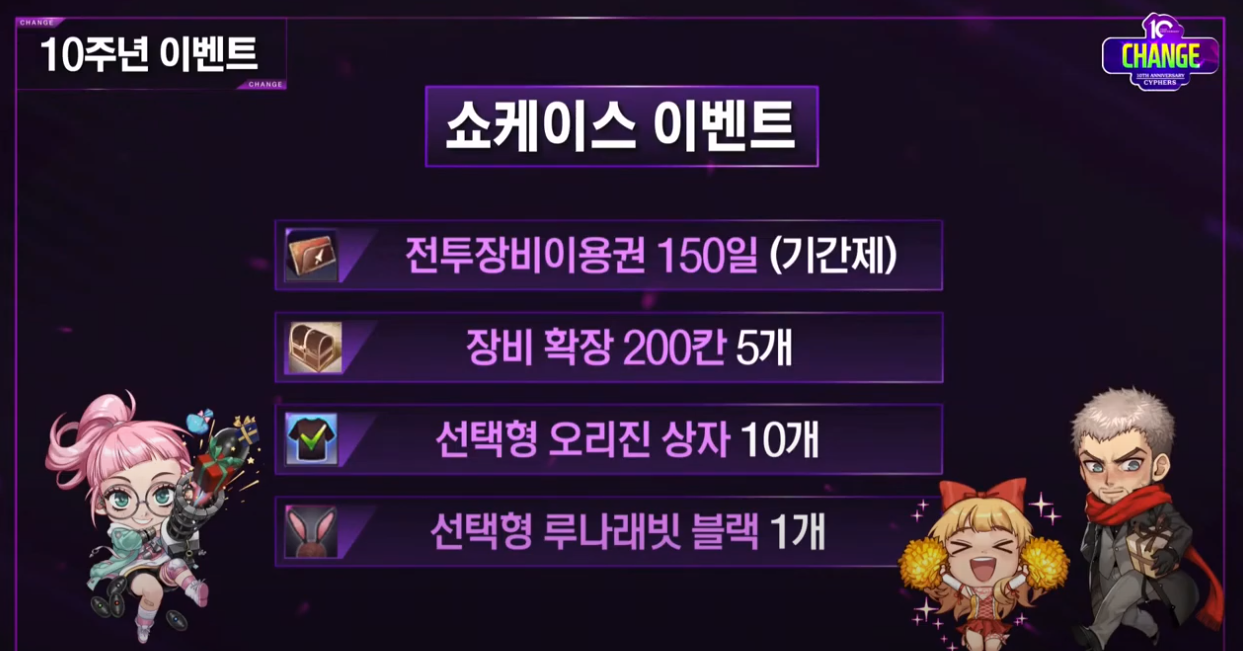 10주년 쇼케이스 이벤트 보상