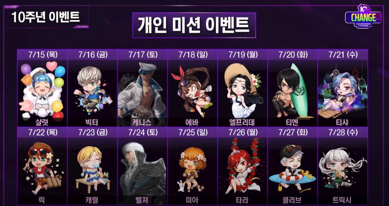7월 15일 업데이트 시 별도 10주년 이벤트 추가 예정.
