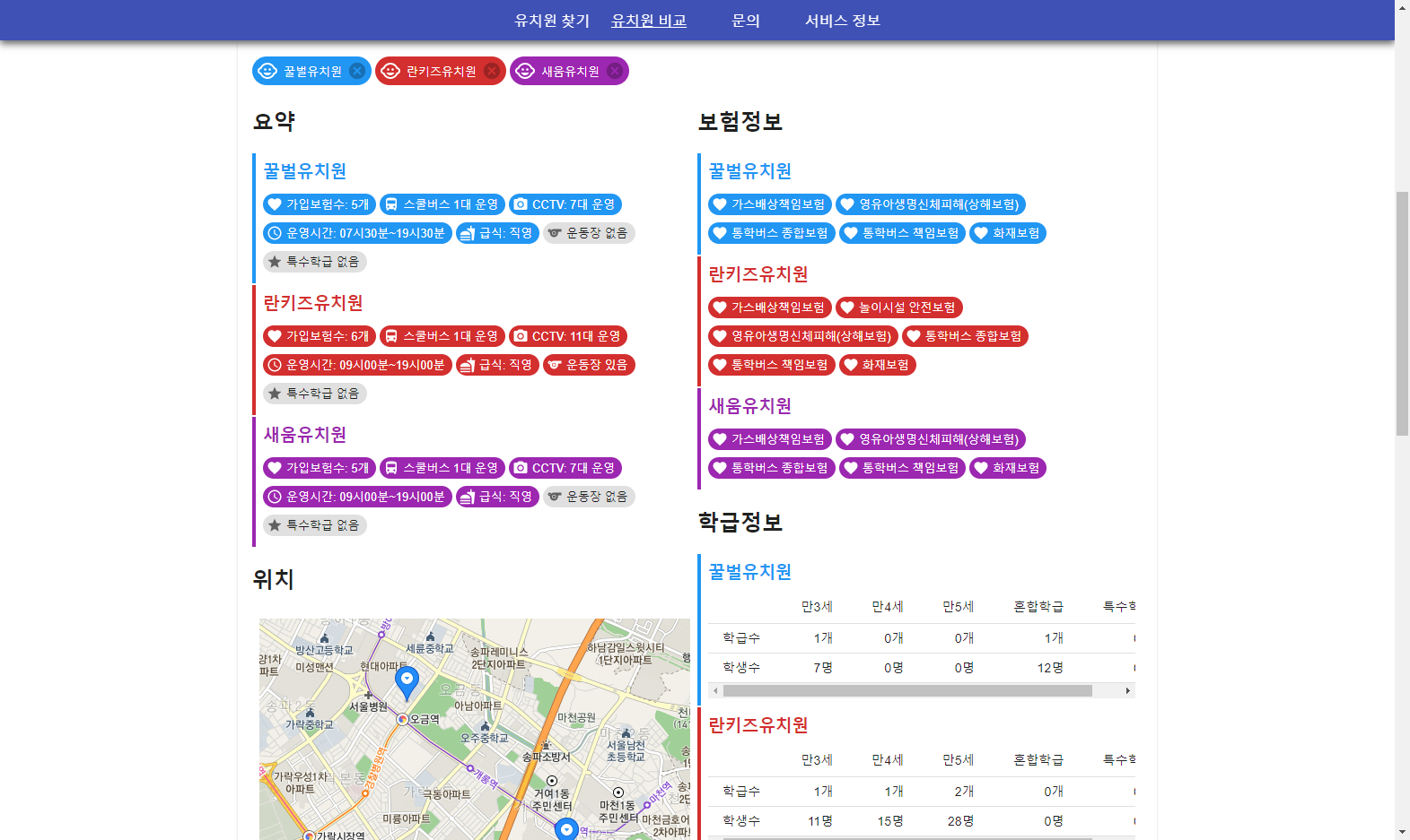 특정 지역에 있는 유치원의 기본 정보들을 확인하고 필터링할 수는 있지만