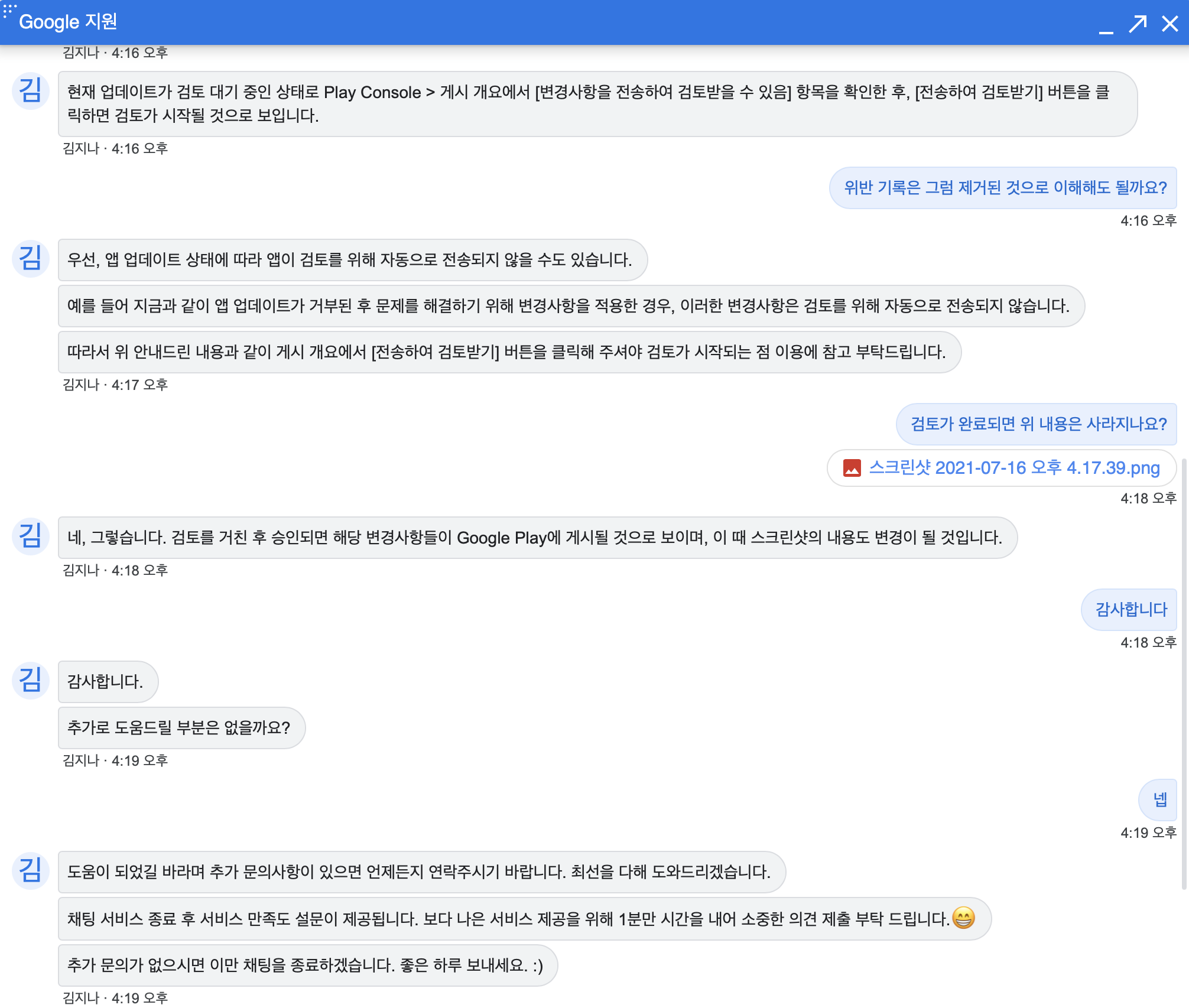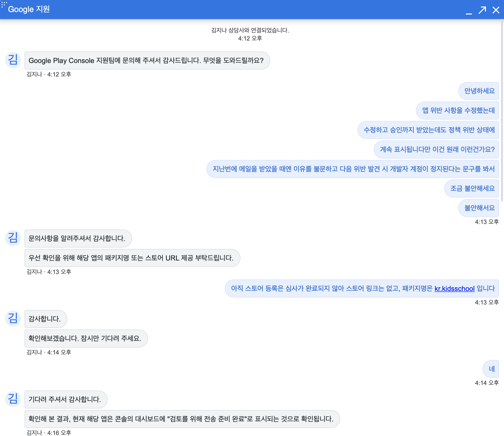 이 상태라면 나중에 이것처럼 위반 사항을 지켰음에도 계정이 해지되는 대참사가 벌어질 수 있기 때문에 문의를 통해 상담을 받았다.