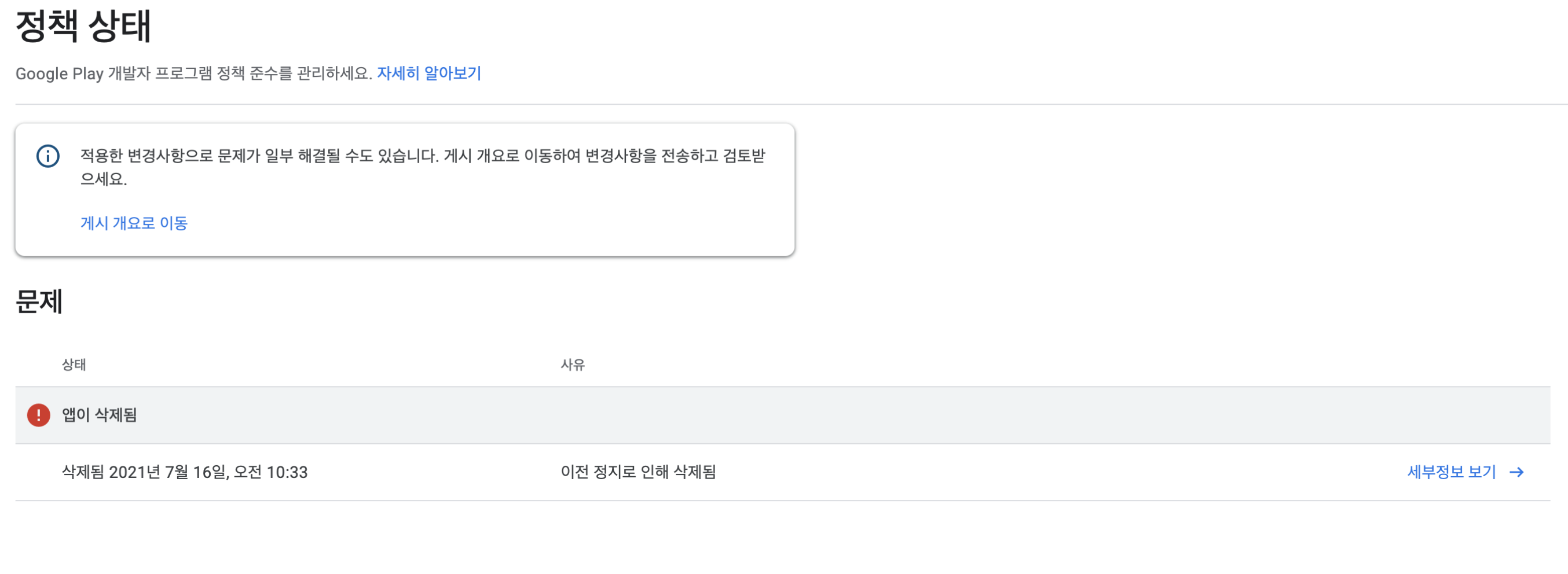 결론은 위반 사항에 대한 이의 신청이 승인되고, 앱 정보 업데이트가 완료되면 위반 내역은 사라진다고 한다.