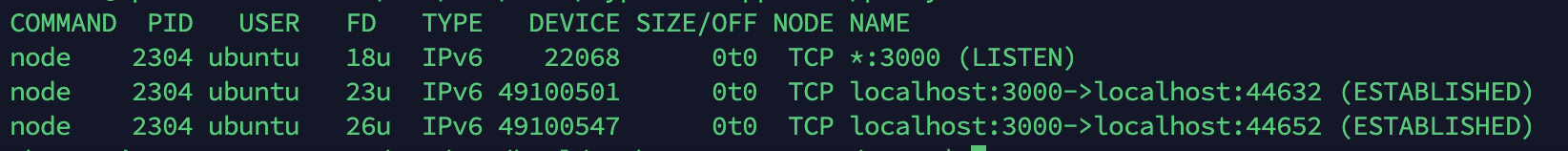 만약 3000번 포트를 사용중인 프로세스의 정보를 알고 싶다면,