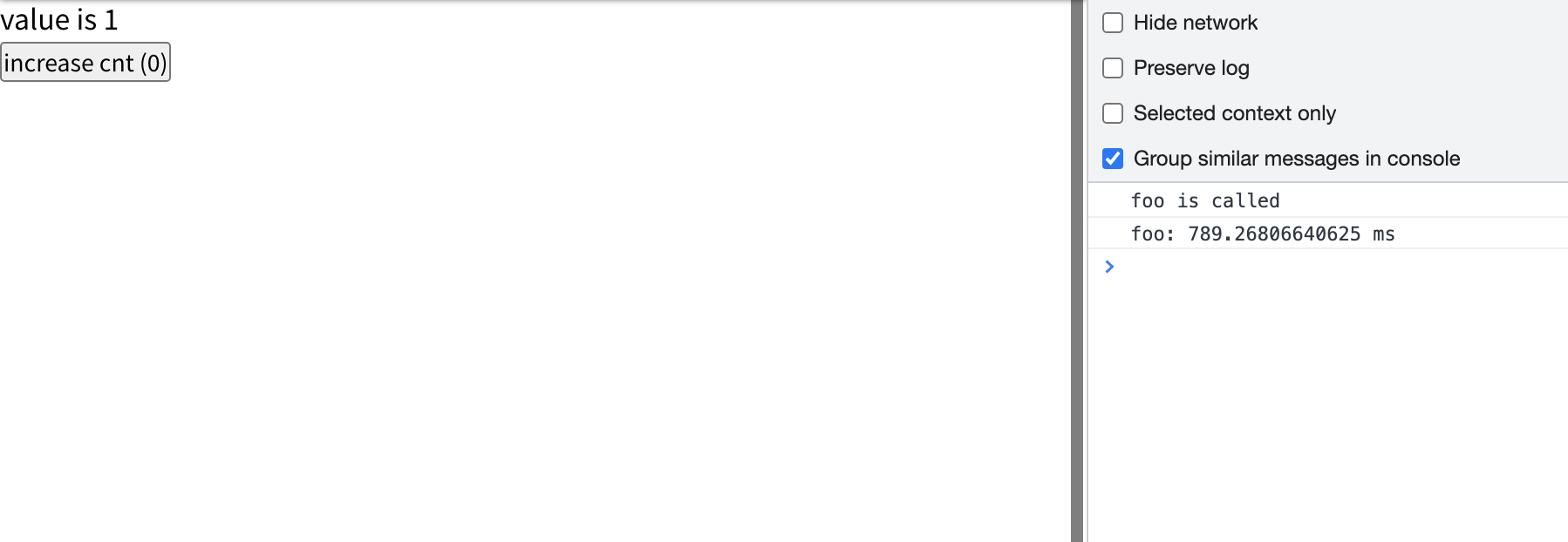 버튼을 5번이나 눌렀지만 foo는 단 한번밖에 실행되지 않았다.
