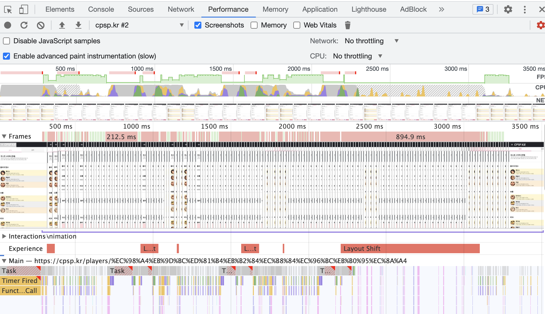 특정 구간에서 프레임 드랍이 심하게 일어나는 것을 확인할 수 있었다.