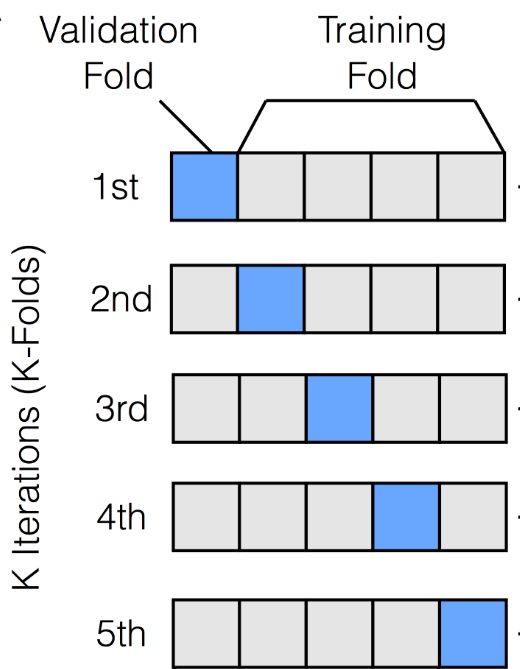 이것은 k번 이루어지며, 모든 청크가 번갈아가며 학습/평가를 반복하고
