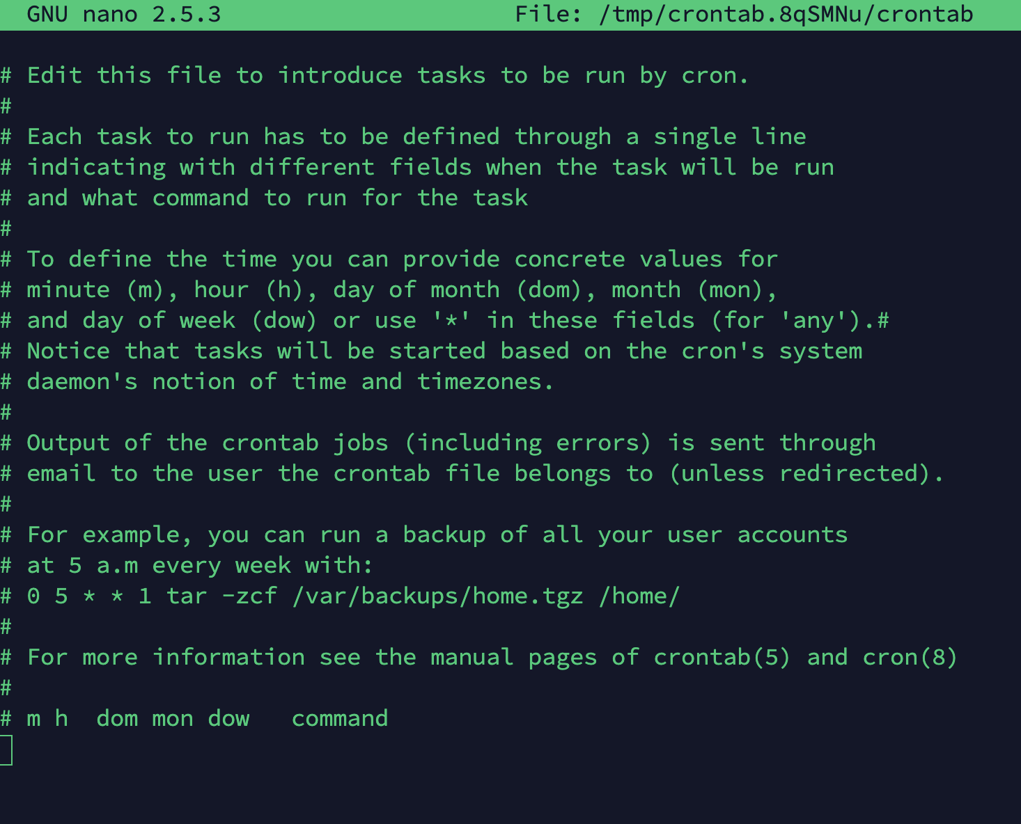 crontab -e