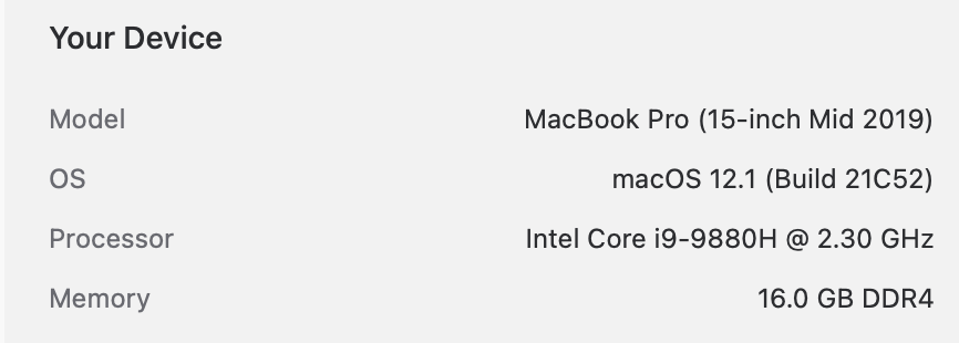 MacBook Pro (15-inch Mid 2019) MacBook Pro (15-inch Mid 2019) Difference Single-Core Score 539 539 100.0% MacBook Pro (15-inch Mid 2019) MacBook Pro (15-inch Mid 2019) Multi-Core Score 4410 4410 100.0% MacBook Pro (15-inch Mid 2019) MacBook Pro (15-inch Mi