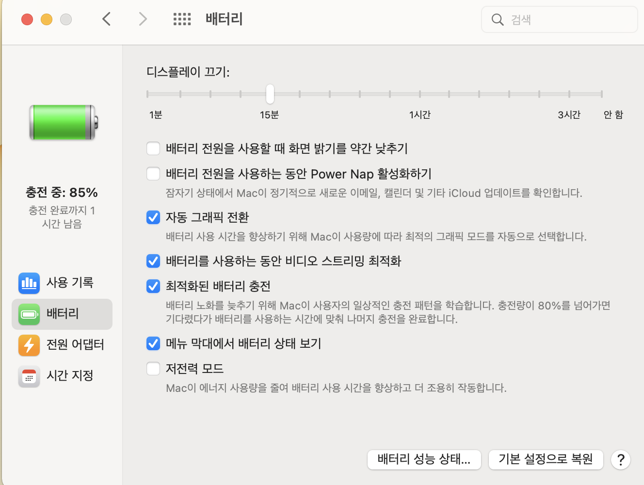 배터리: 터보부스트비활성화> 저전력> 기본