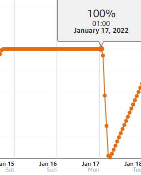 위 사진은 CPU Utilization Metric인데, 계속 CPU를 갈구다가 뚝 떨어져버렸다.