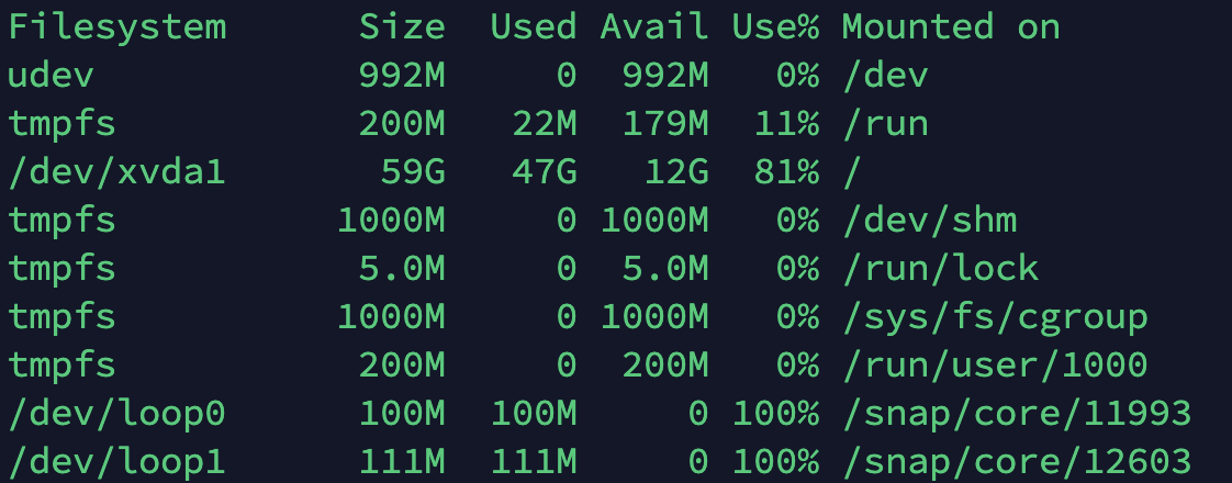위 명령어를 이용하면 마운트된 드라이브 별 사용량을 볼 수 있다.
