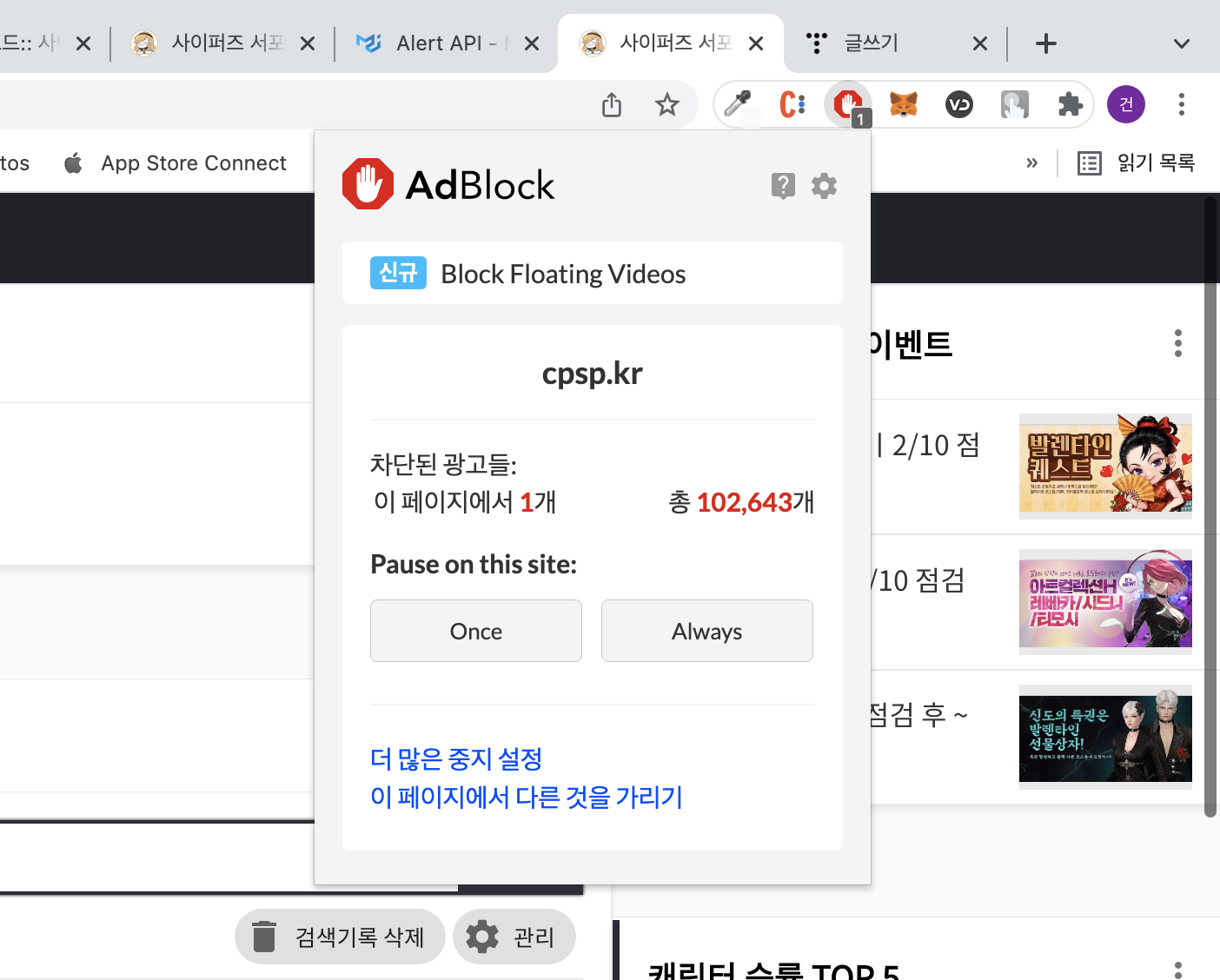 특정 사이트에서 애드블록을 해제하는 방법 본문