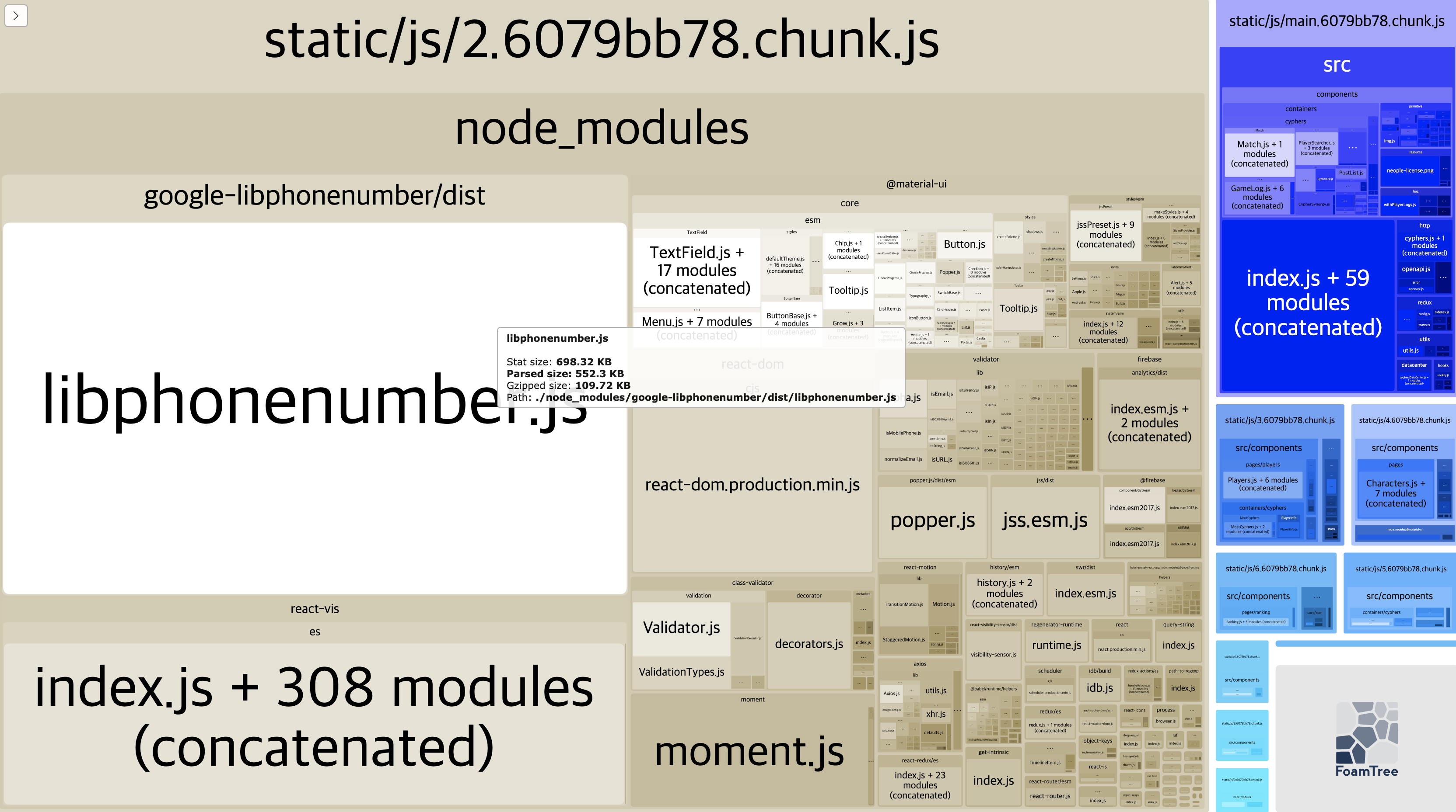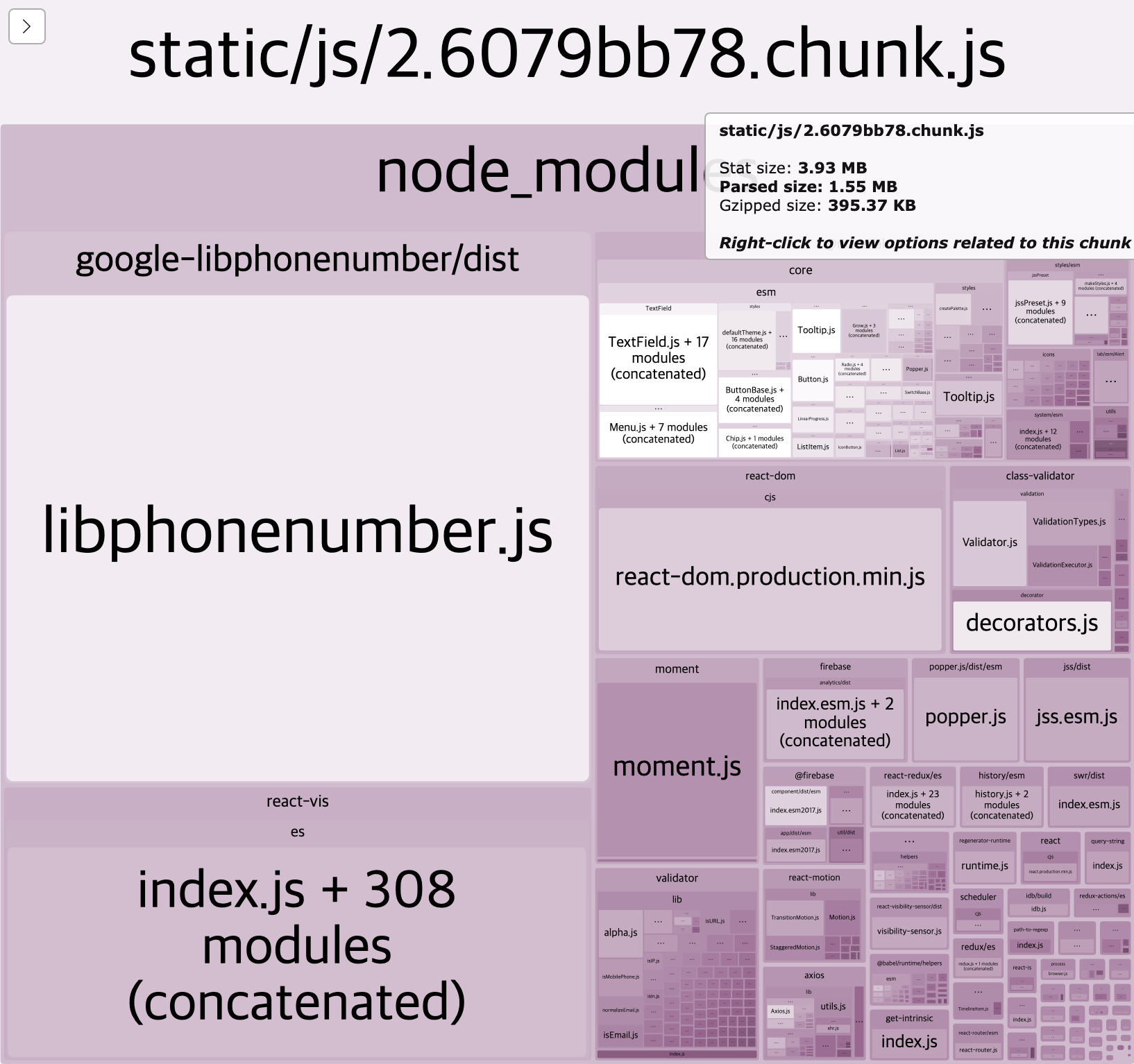 그러나 우연한 계기로 번들 사이즈 분석을 해본 결과 class-validator의 의존성인 libphonenumber.js가 어마어마한 크기를 차지하는 것을 확인했다. (압축 전 bundle size기준 약 610KB)