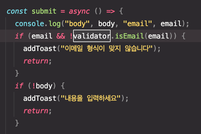 이메일 입력에 대해 유효성 검증을 하는 것이 전부였다.