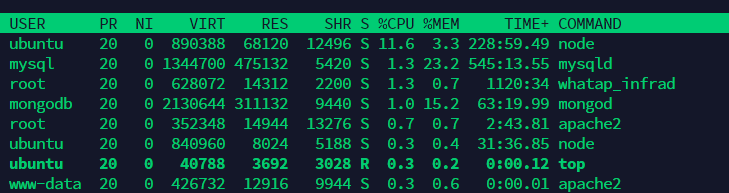 Nodejs Satisfaction 2022. 5. 16. 01:58top 명령어를 사용하면 실행 중인 nodejs 프로세스는 다음과 같이 표시된다.