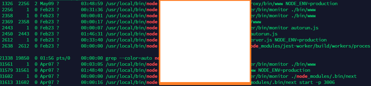 첫 행이 pid이므로, 종료할 프로세스가 있는 경우 그 node 프로세스가 어떤 스크립트를 실행하는 것인지 확인한 후