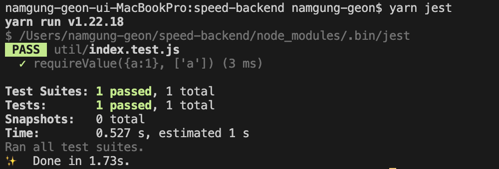 이제 yarn jest를 실행하면 프로젝트 내 test 파일 전체가 실행된다