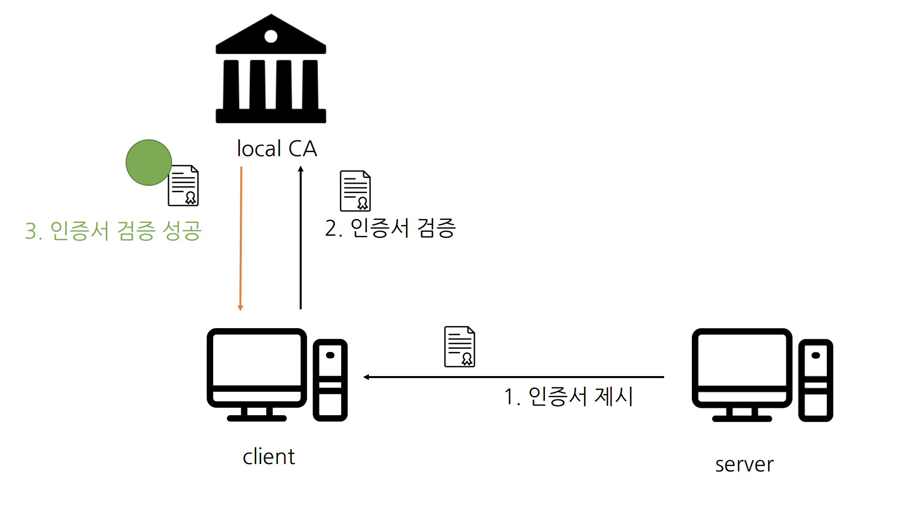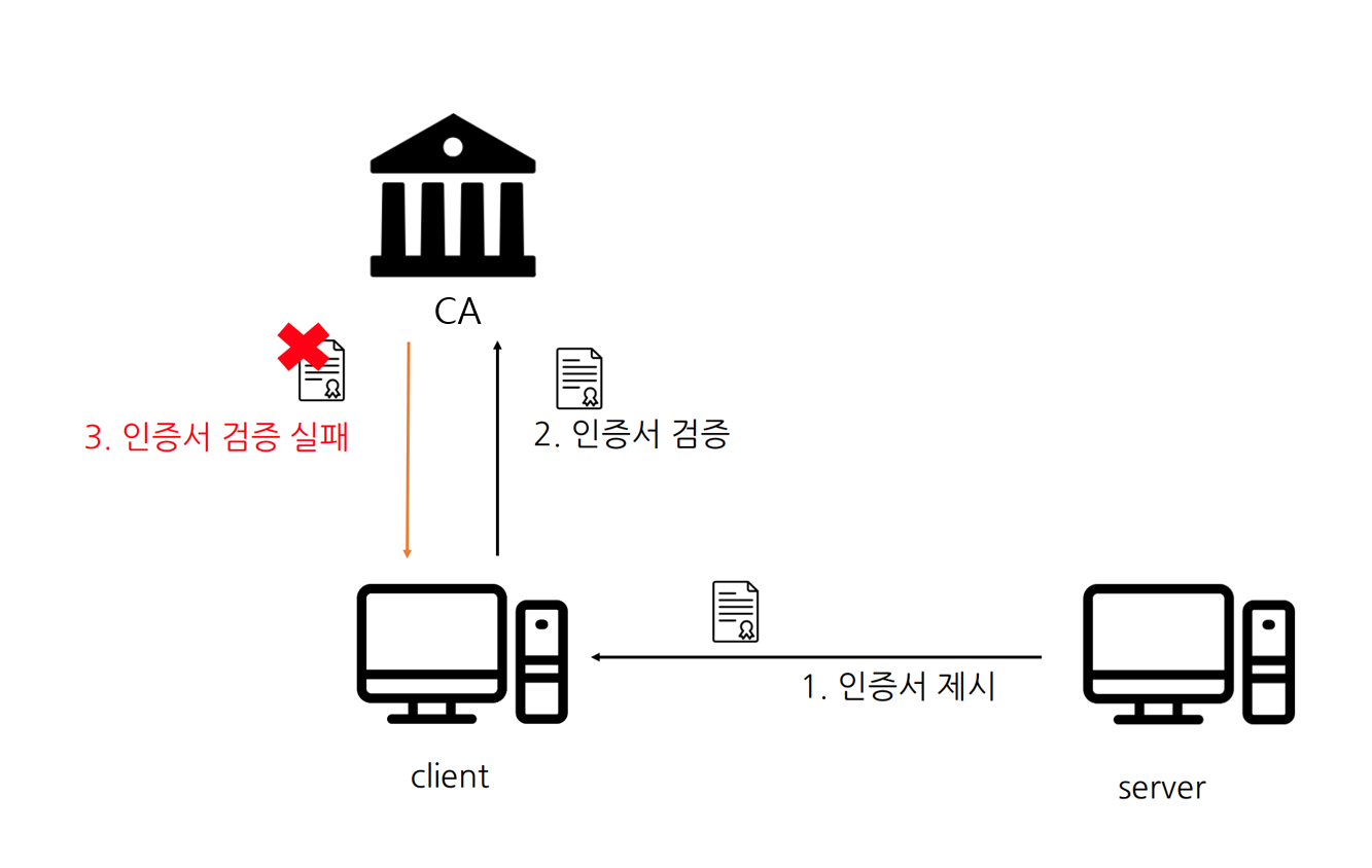 2. 클라이언트는 인증 기관(CA)에게 인증서 검증