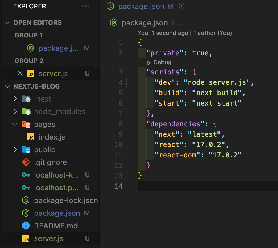 dev스크립트를 next dev-> node server.js로 바꿔 준다.