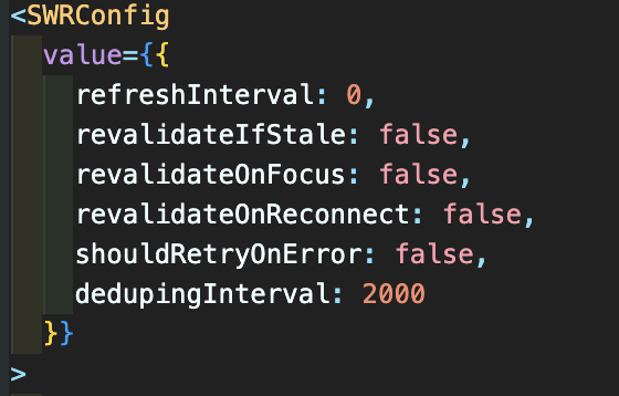 아 물론 전역적으로 이 설정값을 사용해서 swr에서 말하는 캐시(여기서는 state가 되겠다)가 revalidate되지 않게 만든다.