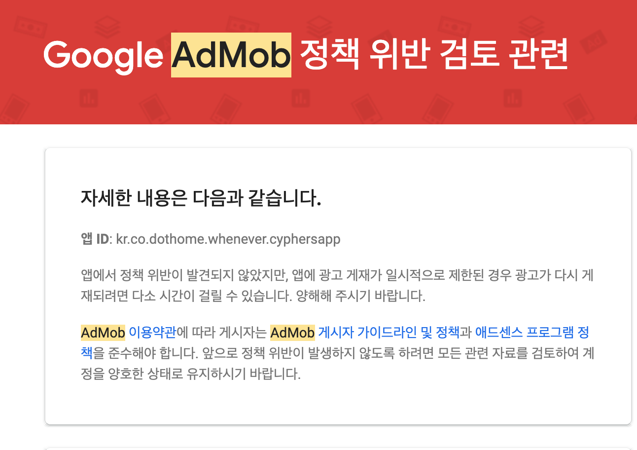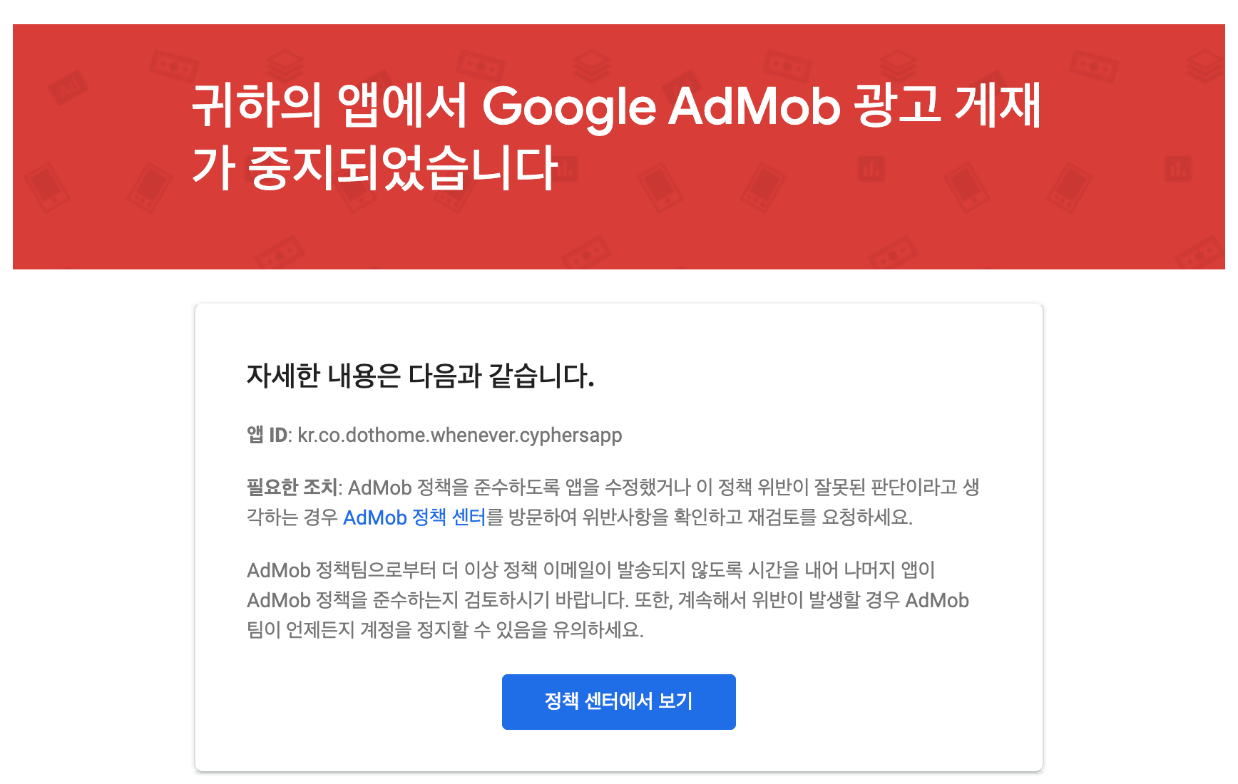 갑자기 정책 위반 관련 메일을 받고 수익창출이 아예 틀어막혀버렸다.