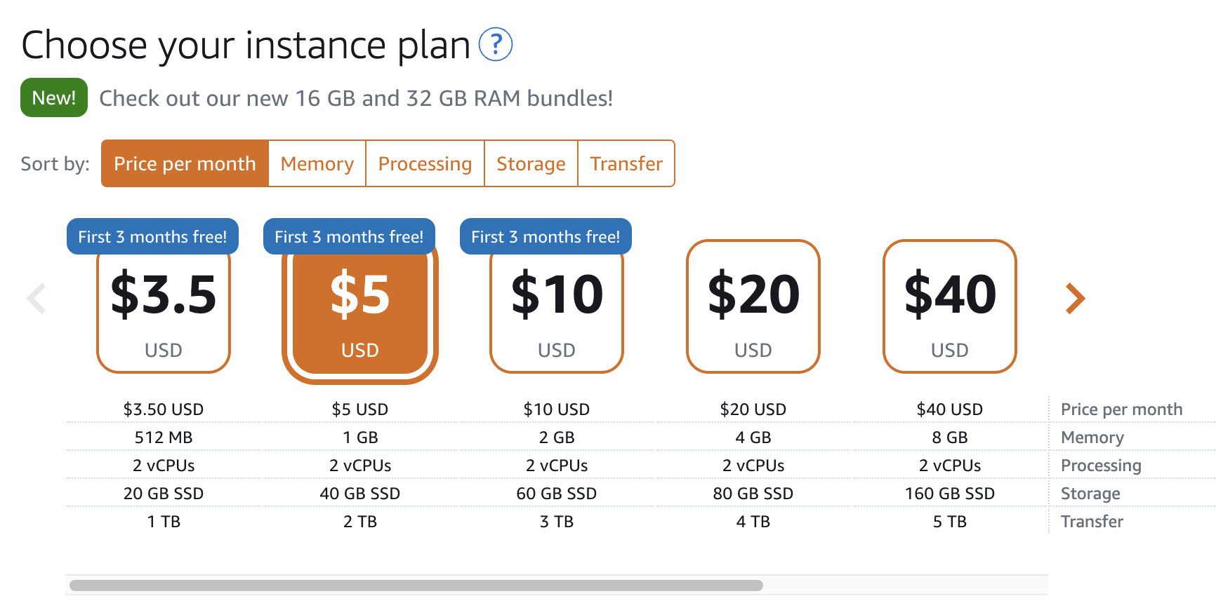 AWS lightsail 요금제별 사양 무료 업그레이드