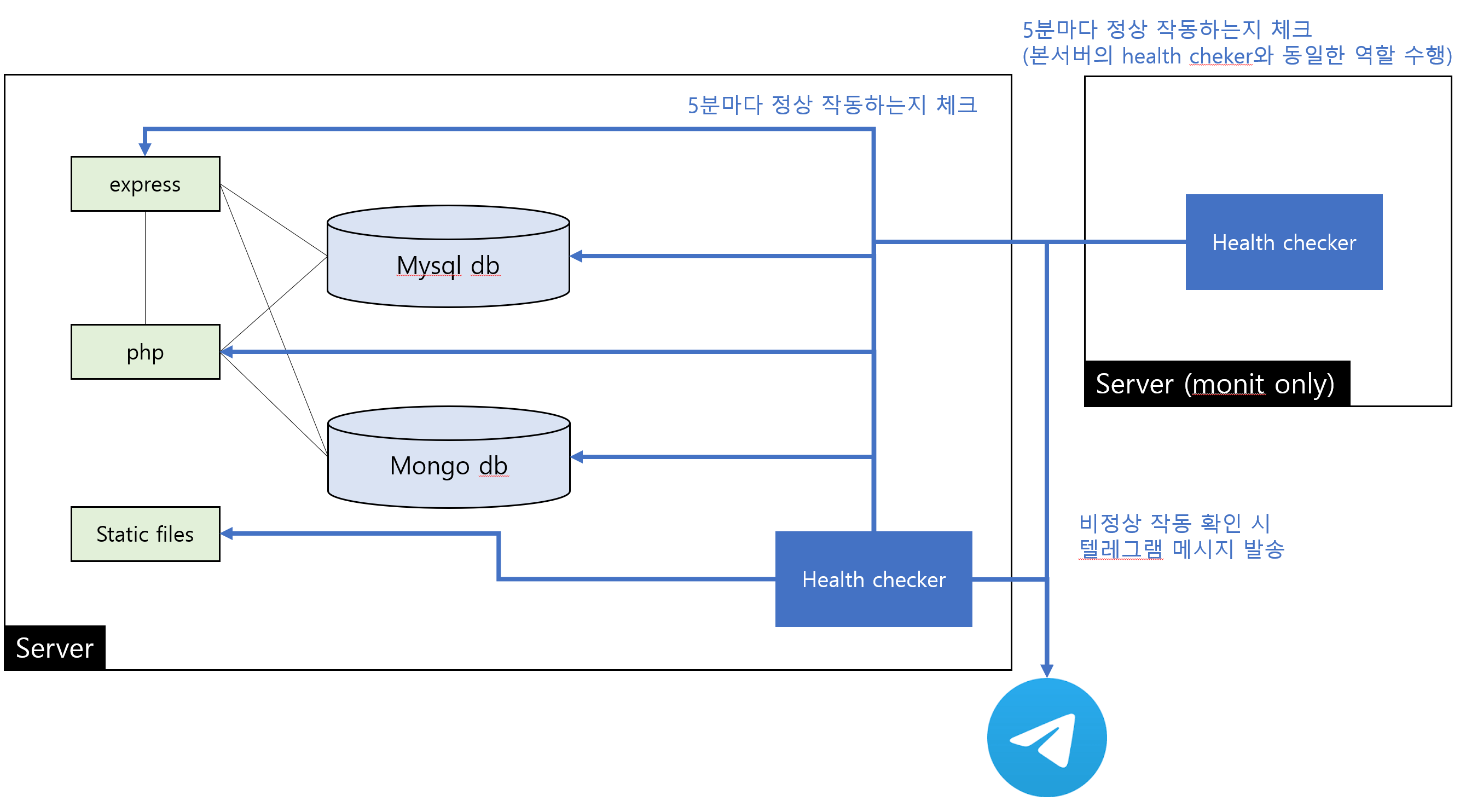 문제가 발생하면 텔레그램 메시지를 발송하도록 하는 모니터링 도구를 추가했다.