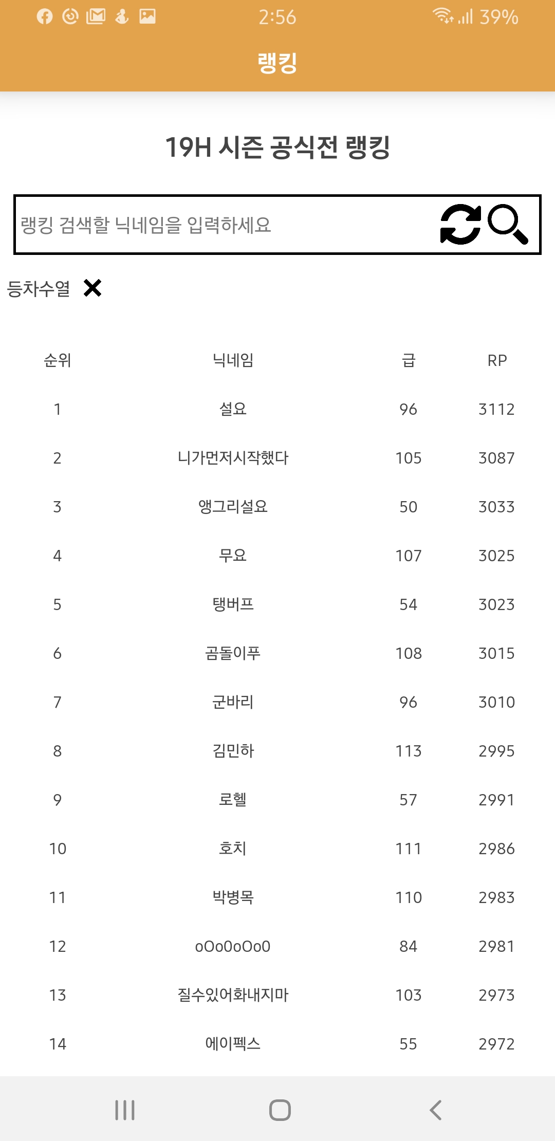 메인 페이지에서 직접 검색하거나, 랭킹 조회 버튼을 누른 후, 랭킹에서 검색하는 방법을 사용할 수 있어요.