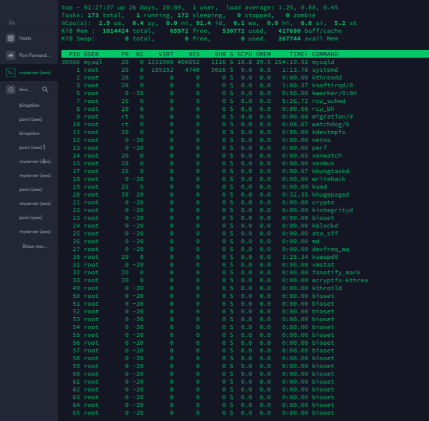 단순하게 커맨드라인에 top을 사용하는 것 만으로도