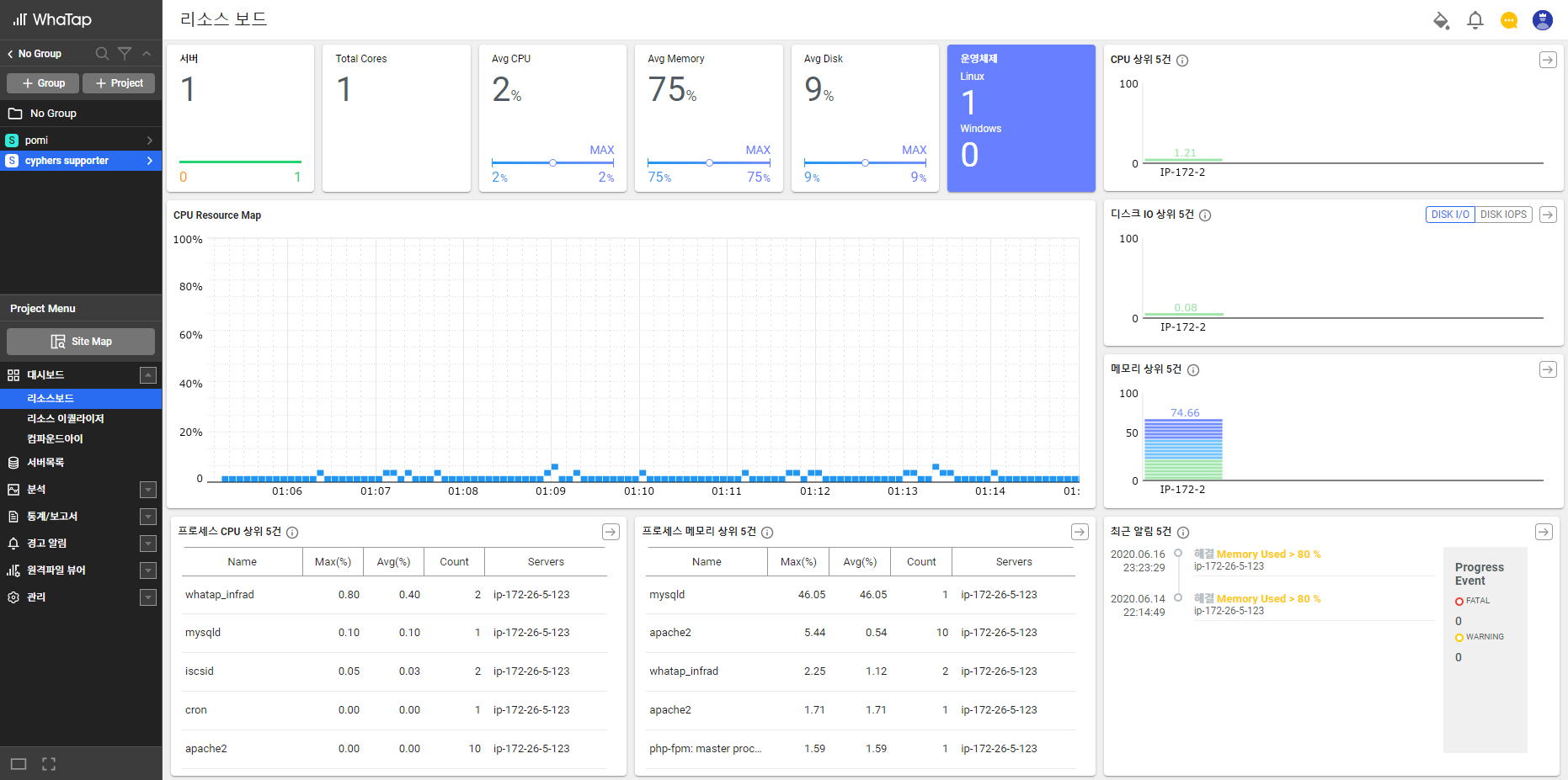 WhaTab을 이용한 서버 리소스 모니터링