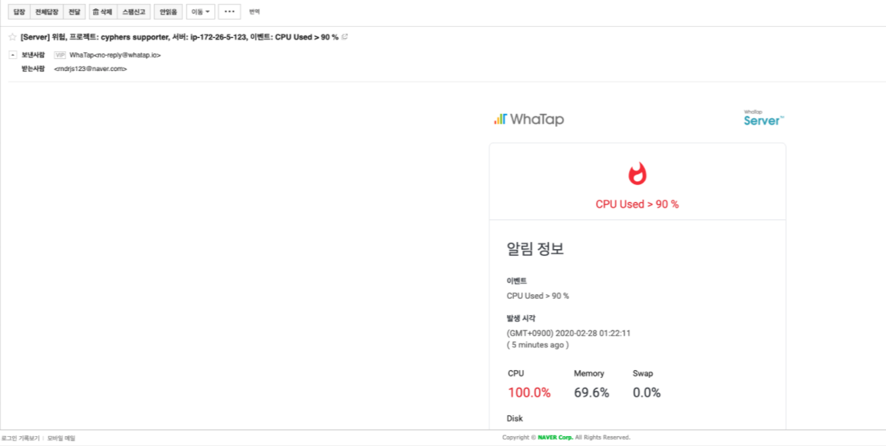 게다가 어떤 서버 자원이 심각하게 부족해 지는 단계가 되면 메일로 알려주기 때문에
