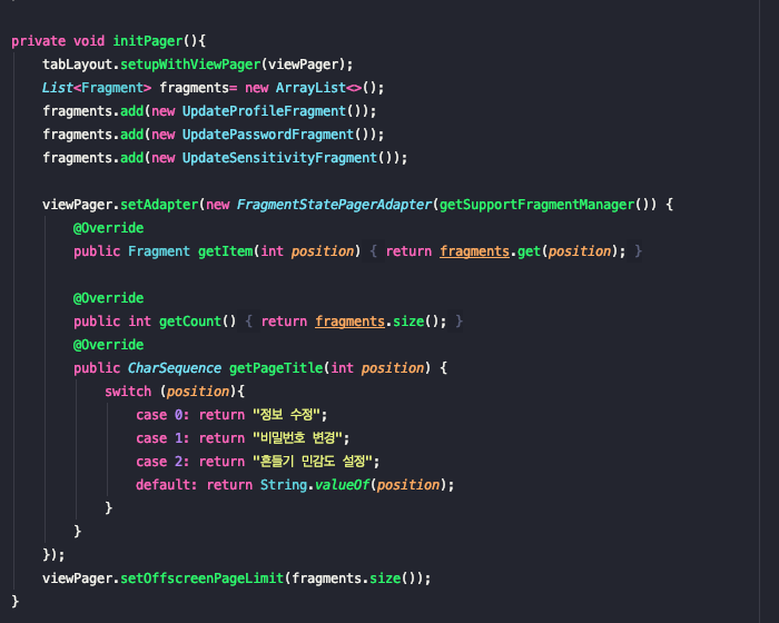 setOffscreenPageLimit는 ViewPager가 상태를 유지할 페이지의 최대 갯수를 변경할 수 있게 해준다.