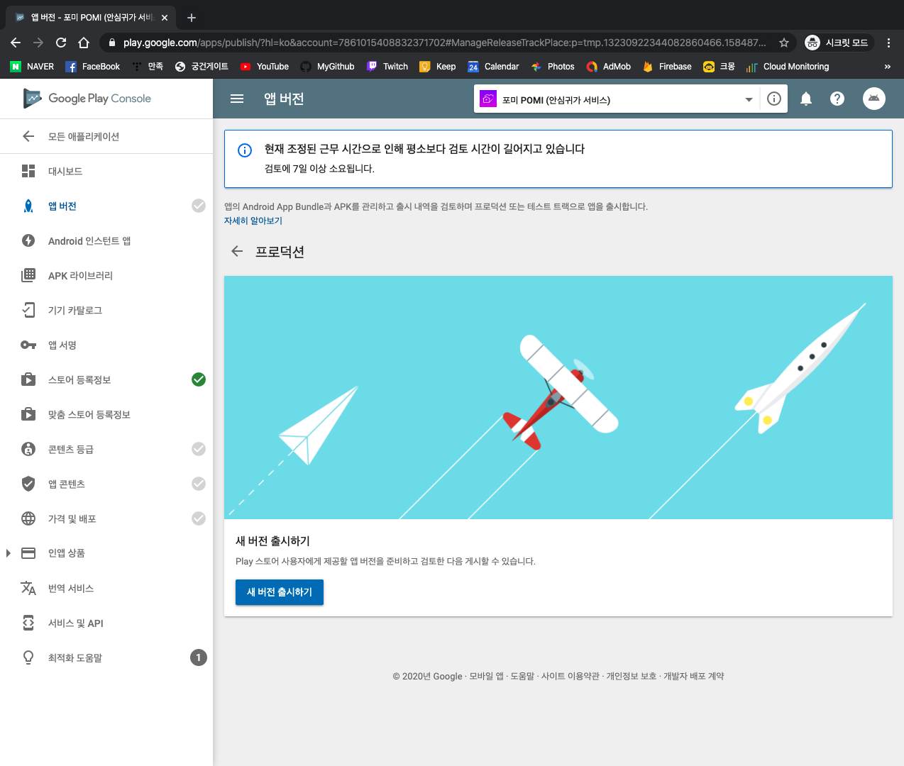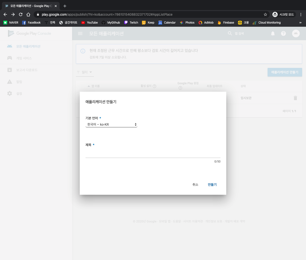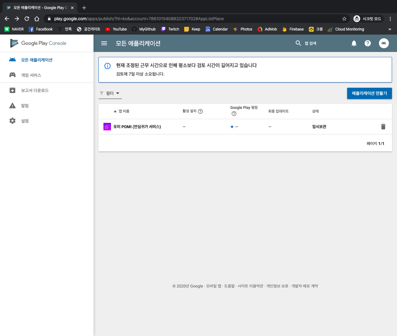 이제 구글의 심사를 대기하면 된다.