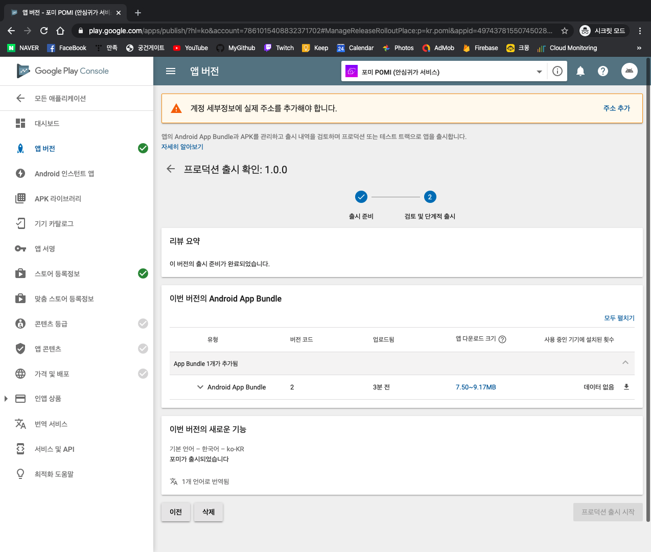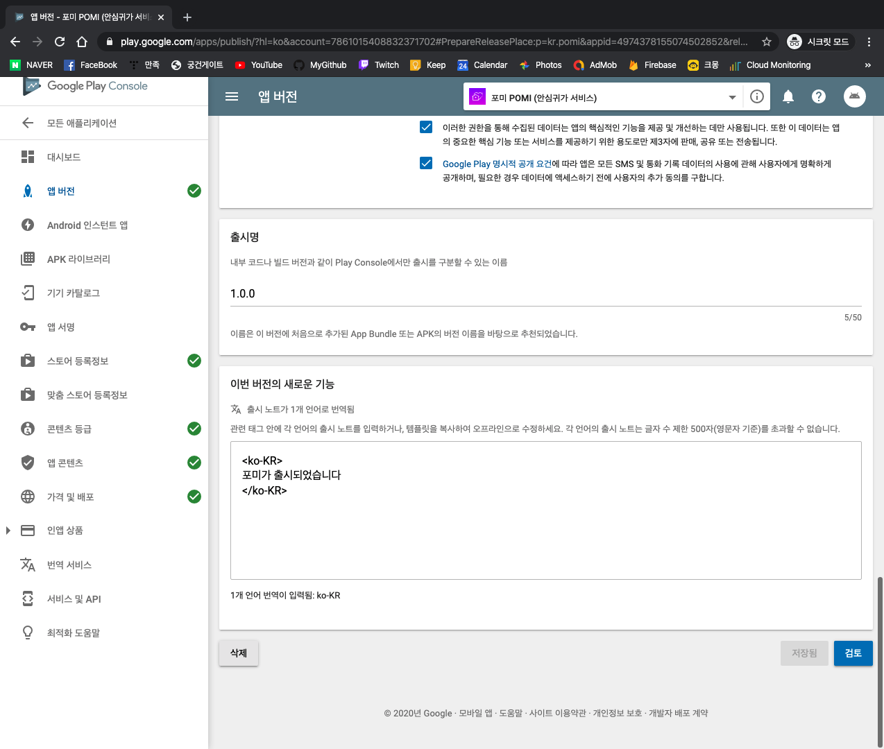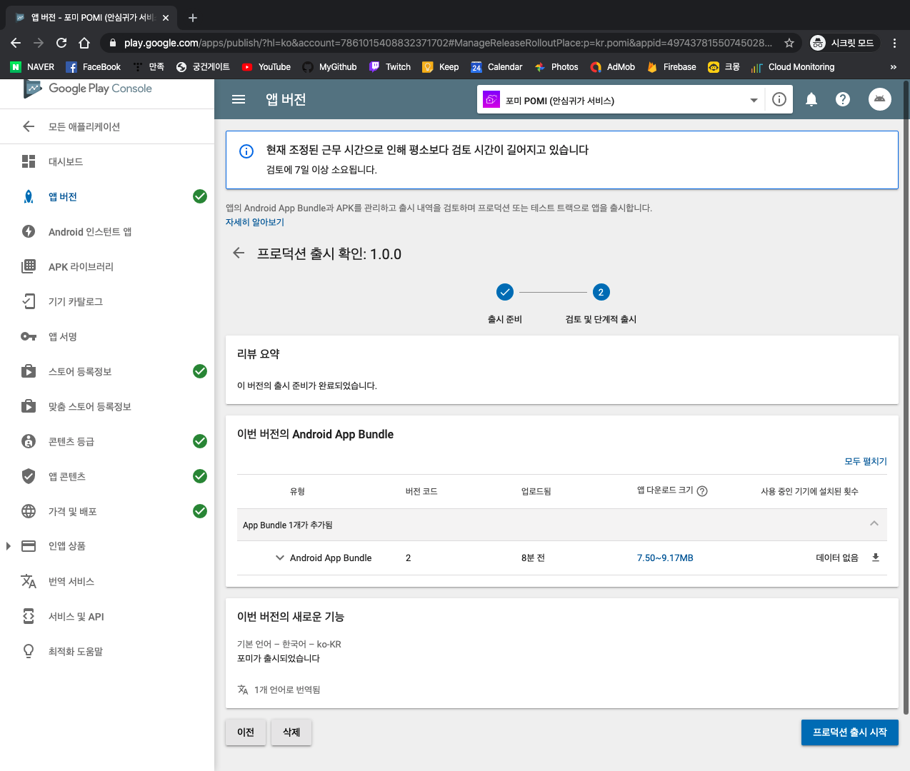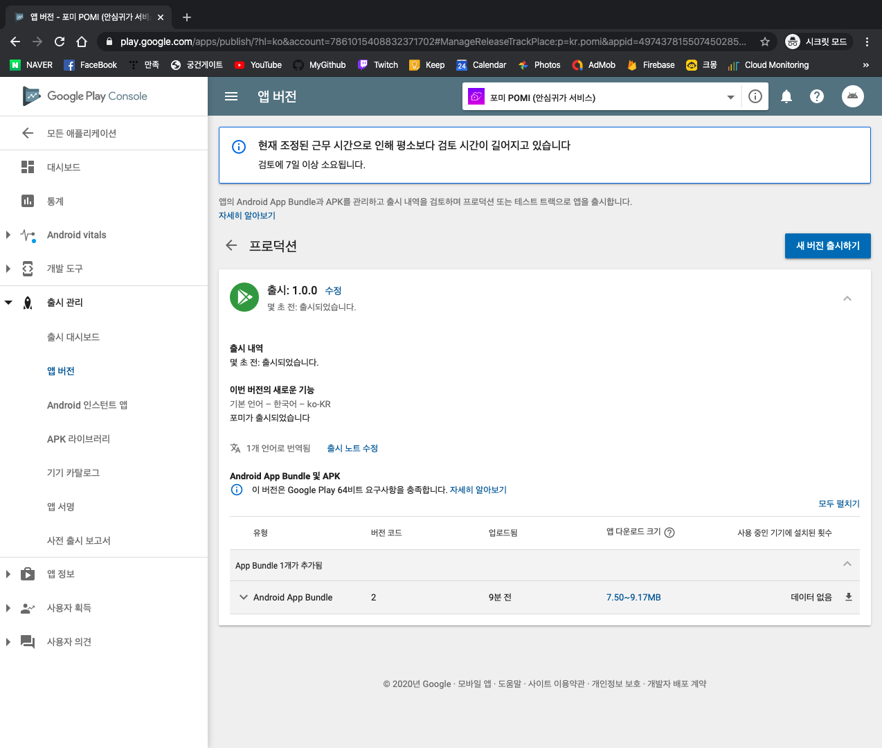이제 구글의 심사를 대기하면 된다.