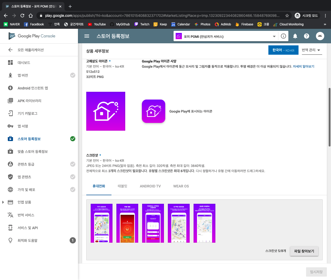 먼저 스토어 등록정보부터 해보도록 하자.