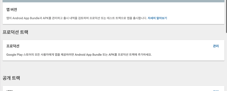 진행을 모두 끝낸 다음, 앱 버전으로 다시 돌아와서 '프로덕션 트랙'의 '버전 수정'을 클릭하자.